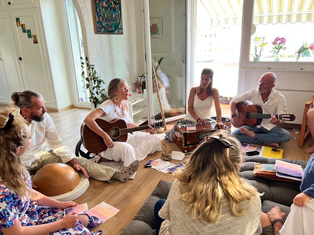 Les chants sacrés, depuis des milliers d’années, nous permettent d’accéder à la conscience du cœur. Nous vous accompagnerons avec nos différents instruments, guitares, harmonium et percussions….